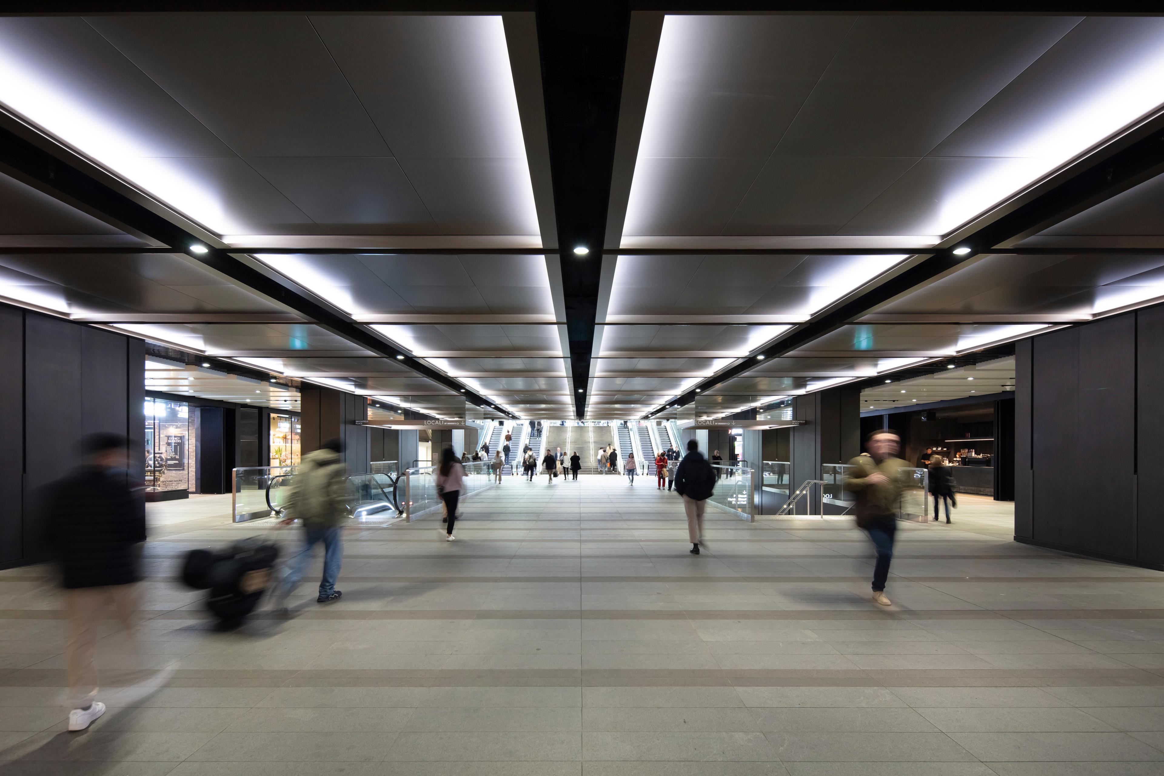 The triple-height transit hall links George Street, Carrington Street and the nearby Wynyard Park for the first time, creating a dynamic, people-centric urban space.