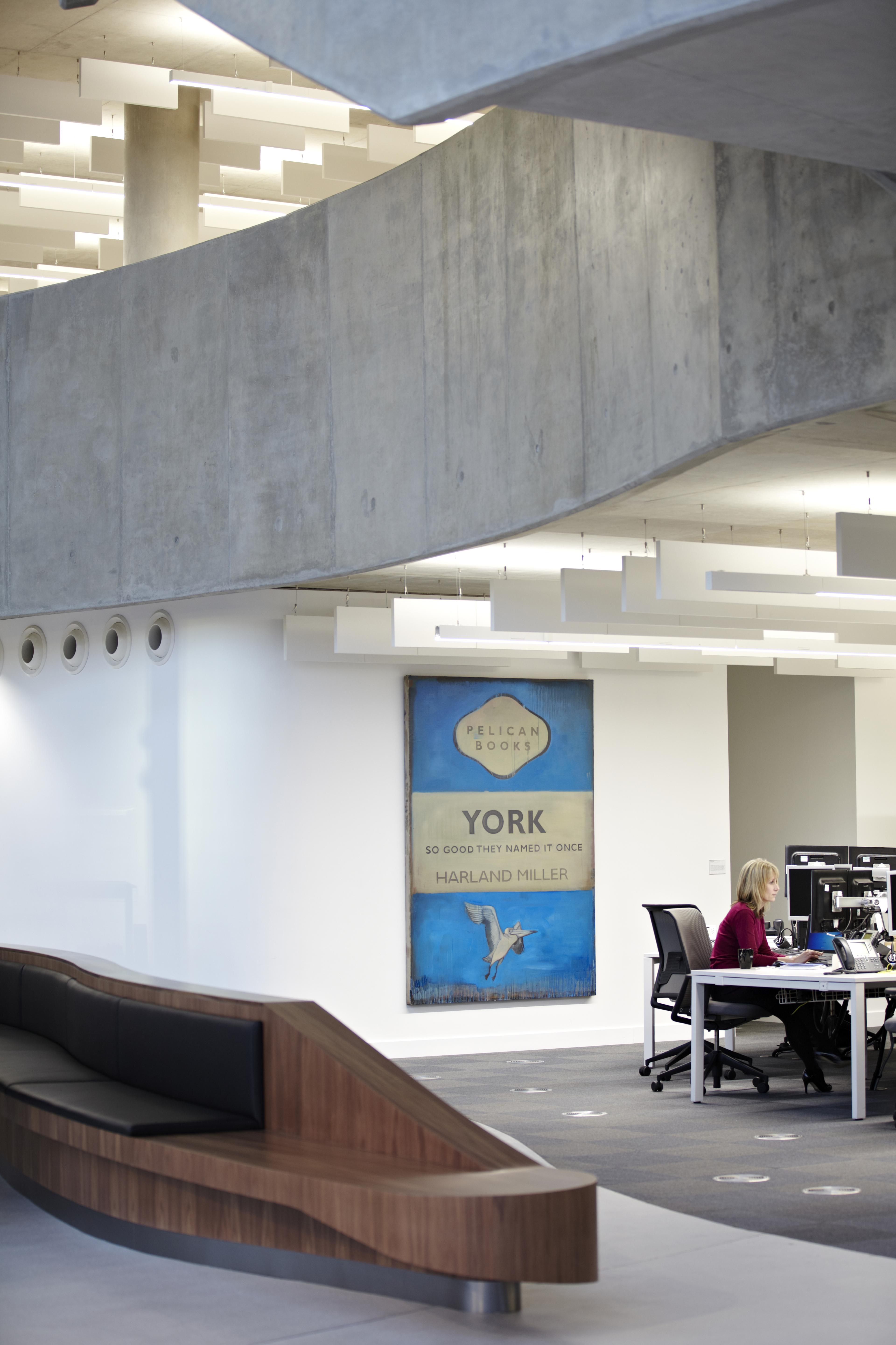 The central staircase helps promote movement, visibility and personal interactions.