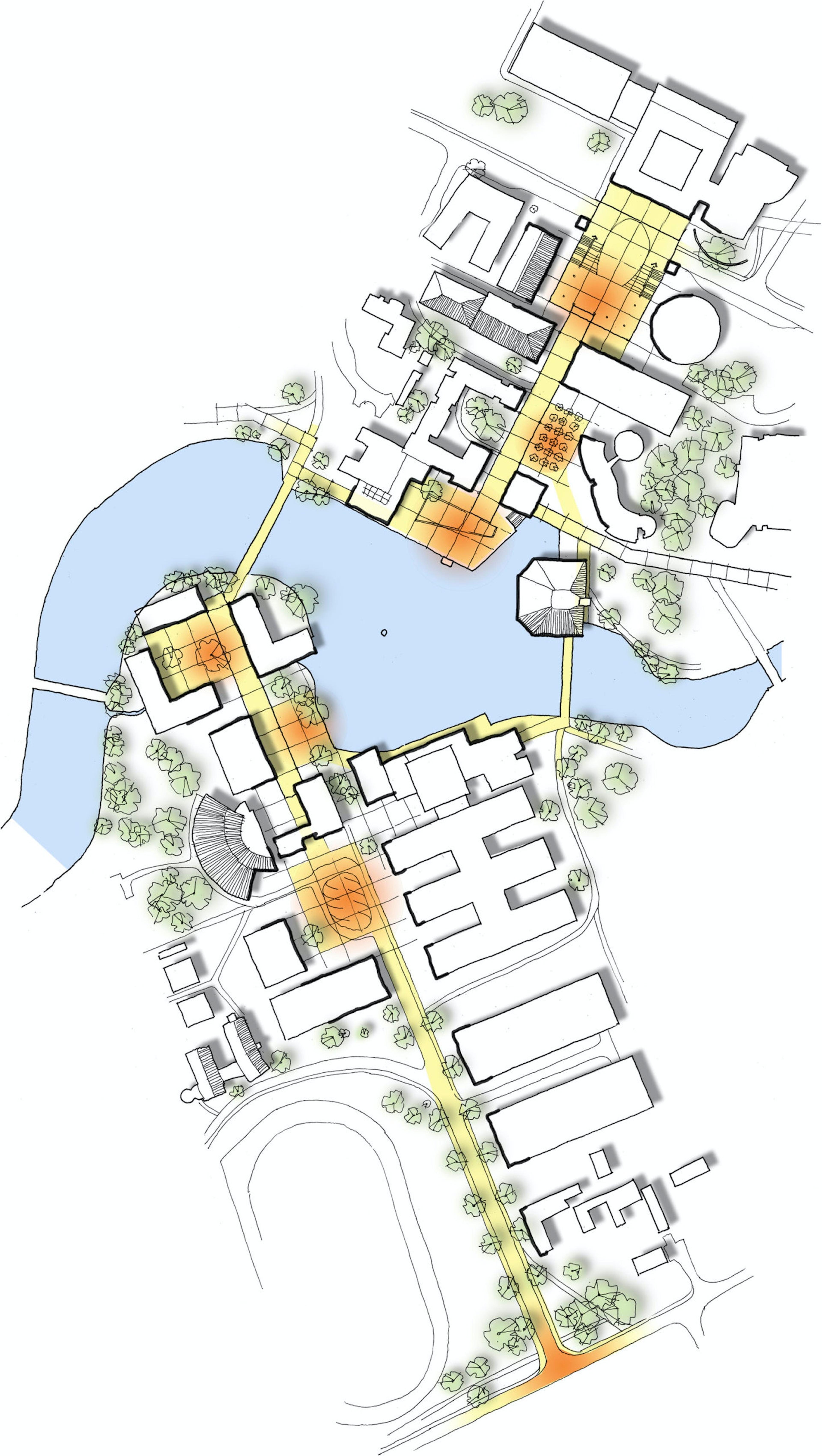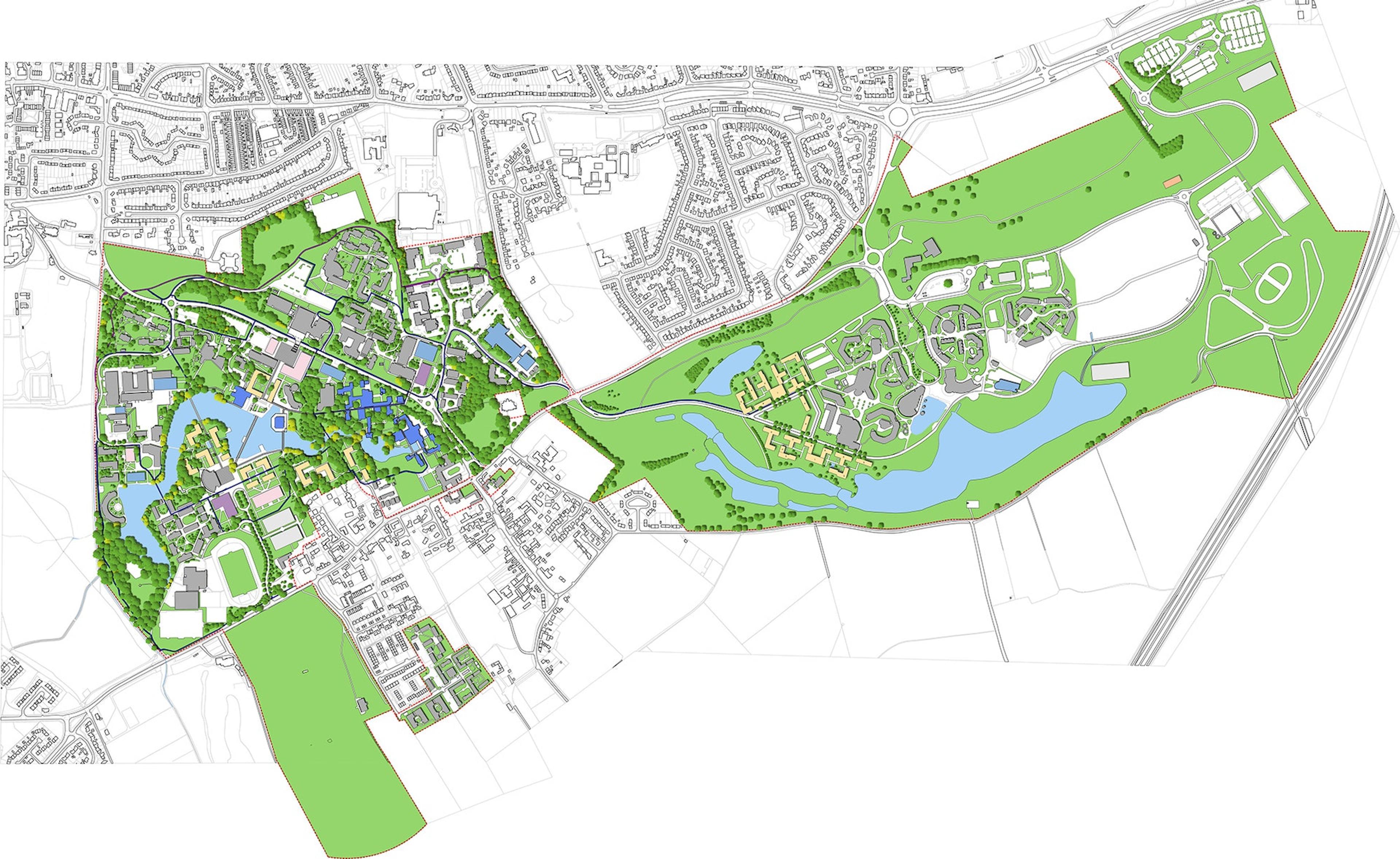 Masterplan showing two front doors to the university, designed to draw people in with clear and legible routes.