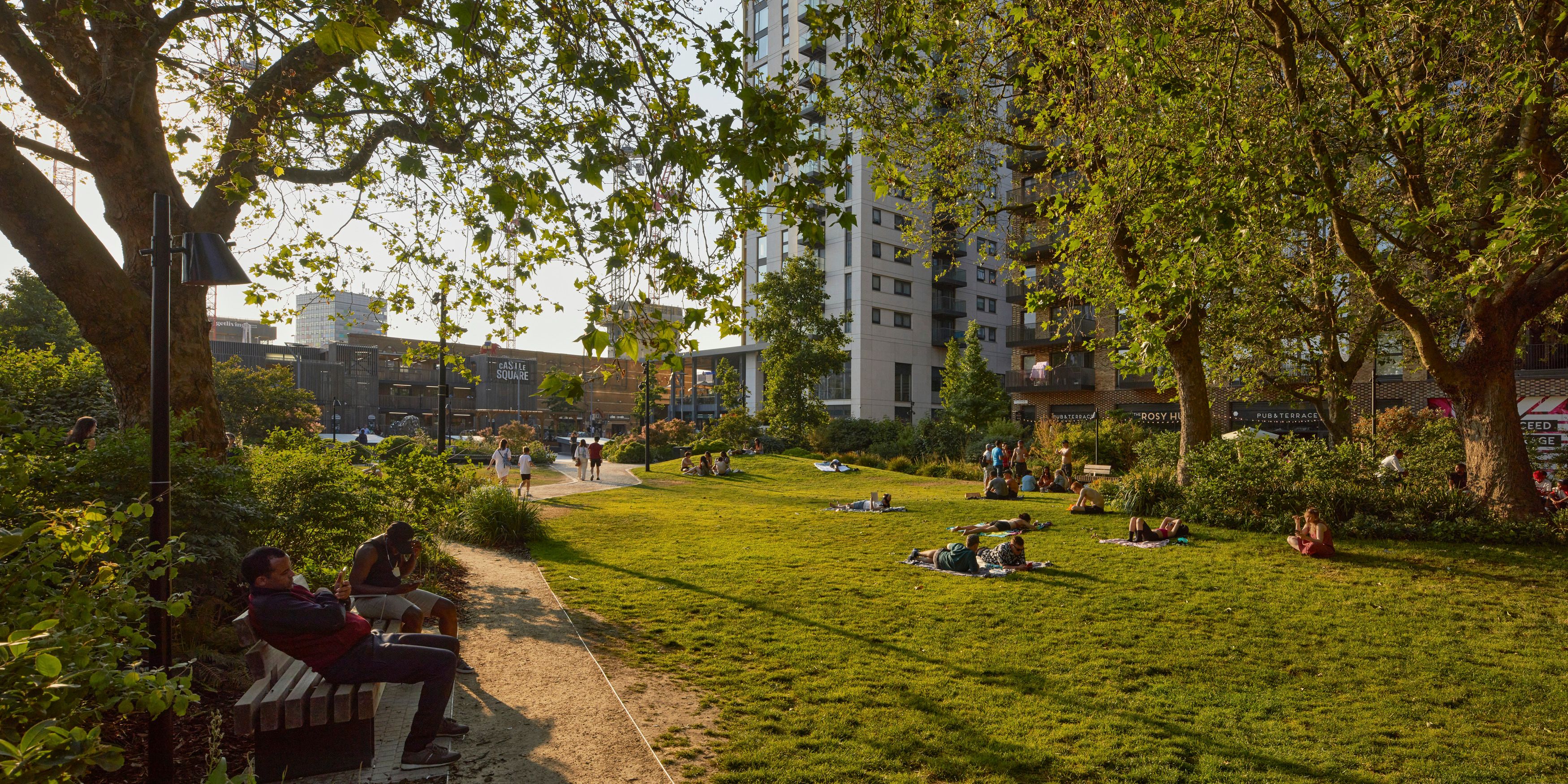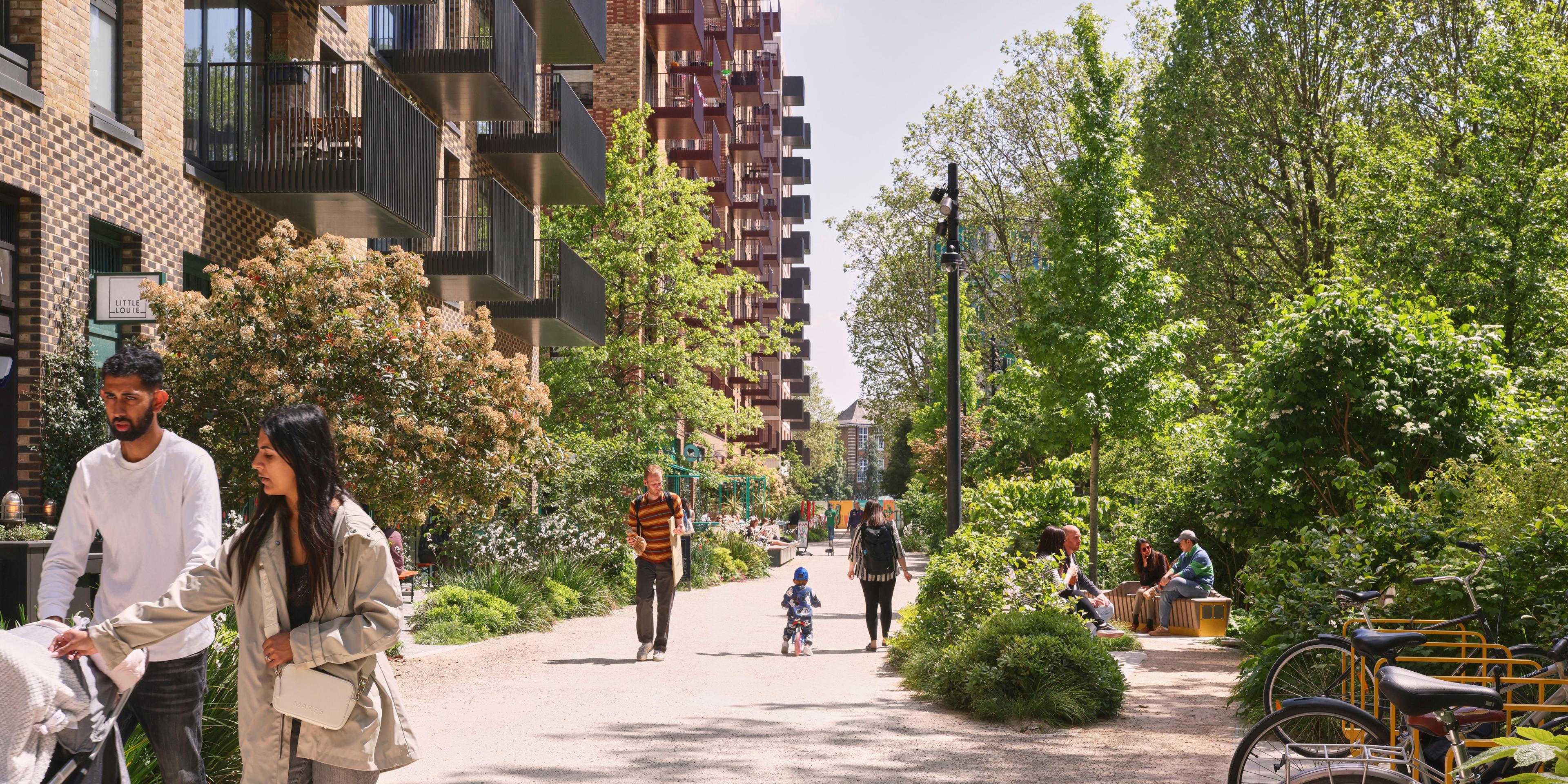 AB: Some of the early plots have basement car parking, but those delivered now have none, other than blue badge and accessible spaces. That is reflective of the way London has developed and the zone 1 location. When the original masterplan was created, Ash Avenue, the retail and dining street adjacent to the park, was a vehicular street, but that design evolved through broader engagement into a pedestrian street. We've really tried to stretch the park up to the buildings, and that has shifted the place towards being walkable and accessible.