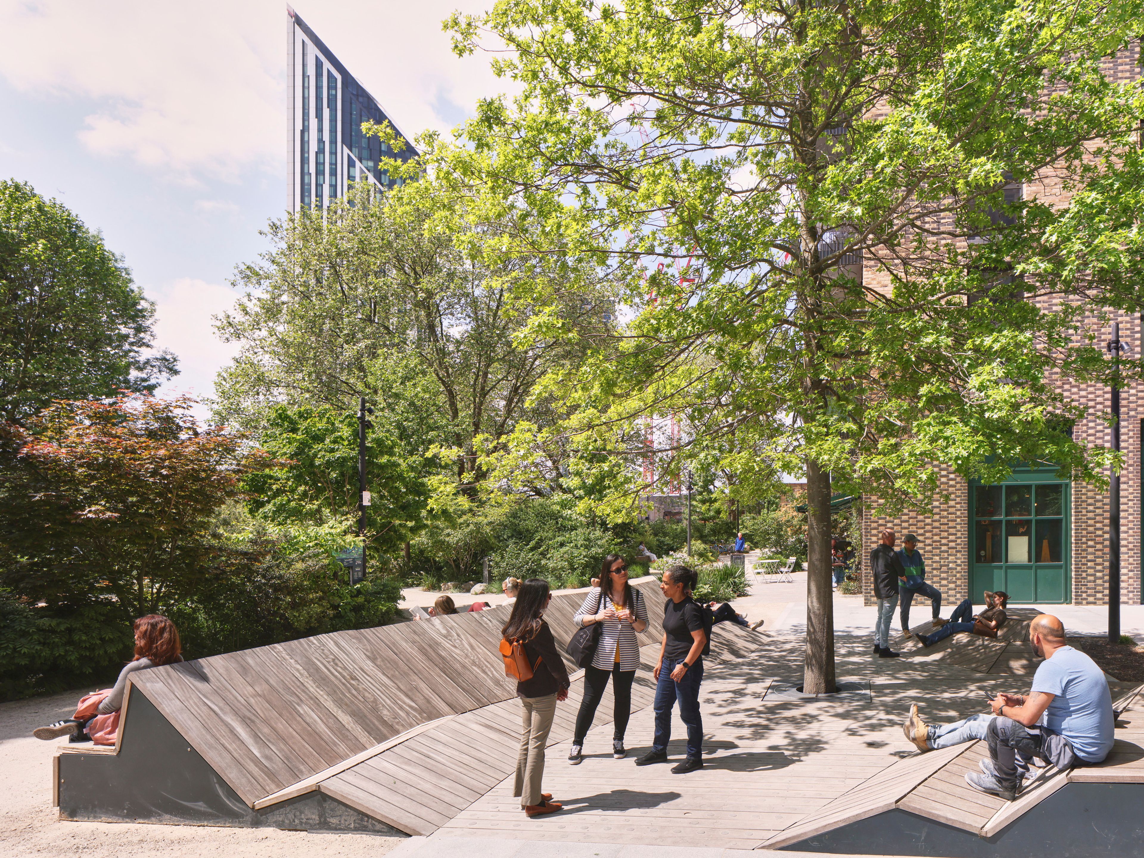 Over the past ten years, London’s Heygate Estate in Elephant and Castle has transformed enormously. Make and developer Lendlease have worked with the community to craft a permeable, integrated place where everyone is welcome – residents old and new, local businesses, Londoners and visitors alike.